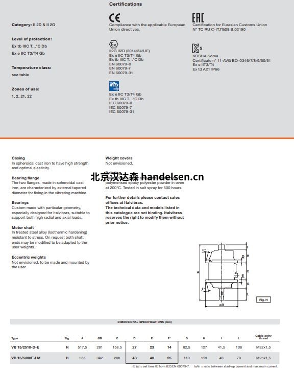 Italvibras VB系列由帶有雙錐形法蘭的立式振動器組成。這些振動器通常用于圓形篩子以及中型和大型篩子。它們不帶偏心重物,必須由振動機制造商實現(xiàn)和安裝。VB 系列符合最新的 IEC 和 EN 國際標準,適用于具有潛在爆炸性粉末的環(huán)境。特別是,VB系列可用于區(qū)域21和22。